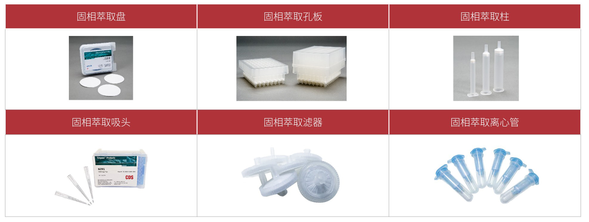 基于Empore?固相萃取膜技術(shù),Empore?產(chǎn)品具有豐富的產(chǎn)品線,包含:固相萃取盤片、固相萃取柱、固相萃取孔板、固相萃取吸頭,以滿足不同應(yīng)用領(lǐng)域的需求。