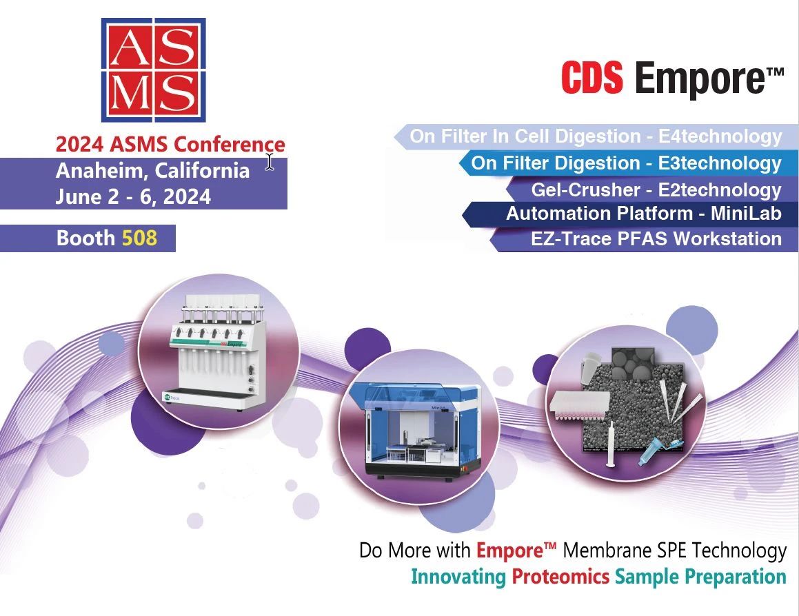 在本次ASMS中,CDS展示了MiniLab蛋白組學(xué)樣品前處理自動化平臺、6通道EZ-Trace固相萃取裝置,以及基于Empore膜技術(shù)的E系列蛋白消解和脫鹽產(chǎn)品。在展臺上重點介紹了CDS新開發(fā)的蛋白組學(xué)樣品前處理離心小柱的性能,其高肽容量和出色的高pH分餾效果讓現(xiàn)場觀眾耳目一新。