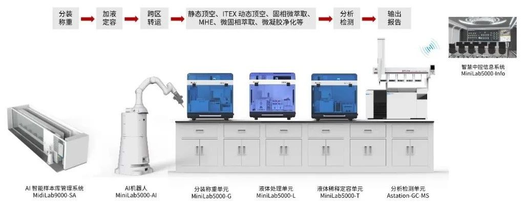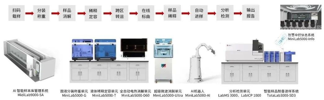 MidiLab9000-E無機(jī)元素在線分析系統(tǒng)集成智能化樣本庫管理、分裝稱重、全自動消解、稀釋定容,與質(zhì)譜、光譜分析方法相結(jié)合,通過小萊AI機(jī)器人,完成待測樣品的轉(zhuǎn)運(yùn),實(shí)現(xiàn)從樣品管理到分析檢測全流程自動化。