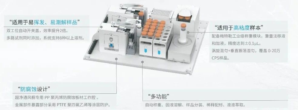 稱重模塊:可以實(shí)現(xiàn)對固體樣品或液體樣品的定量分裝。