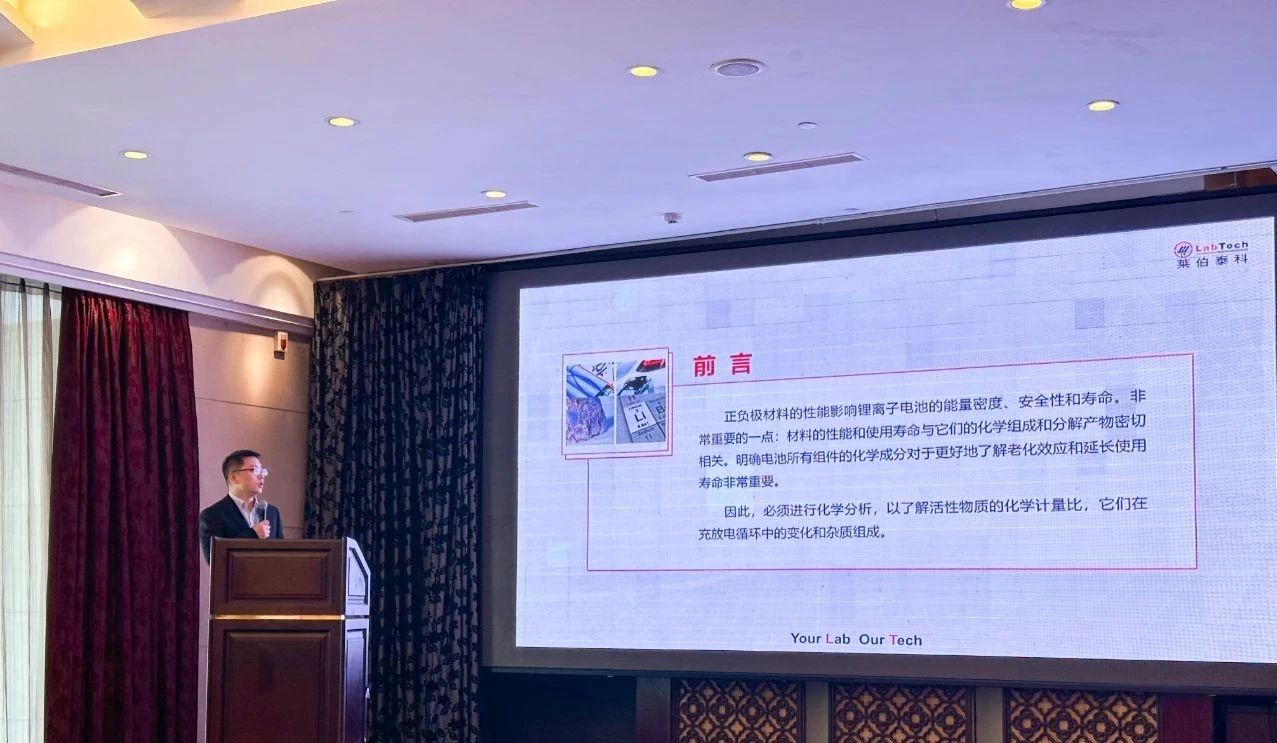 本次會(huì)議重點(diǎn)聚焦于原子光譜質(zhì)譜技術(shù)的前沿領(lǐng)域,積極促進(jìn)了國(guó)內(nèi)外的學(xué)術(shù)交流互動(dòng),而萊伯泰科在會(huì)議期間充分展示了其在科學(xué)儀器國(guó)產(chǎn)替代進(jìn)程中所取得的顯著突破。 在此次研討會(huì)上,萊伯泰科攜自主研發(fā)的 LabMS 5000 電感耦合等離子體串聯(lián)質(zhì)譜儀驚艷亮相。萊伯泰科質(zhì)譜產(chǎn)品經(jīng)理陳磊發(fā)表了題為《萊伯泰科原子光譜技術(shù)進(jìn)展及無(wú)機(jī)元素檢測(cè)一站式解決方案》的報(bào)告。在報(bào)告中,陳磊詳細(xì)闡述了萊伯泰科如何在鋰電池產(chǎn)業(yè)鏈的各類正負(fù)極材料、隔膜材料、電解液以及濕化學(xué)電子品的復(fù)雜前處理和分析檢測(cè)環(huán)節(jié)提供強(qiáng)有力的技術(shù)支持,為我國(guó)新能源汽車產(chǎn)業(yè)的穩(wěn)健發(fā)展貢獻(xiàn)關(guān)鍵力量,該演講收獲了與會(huì)者的一致贊譽(yù)。