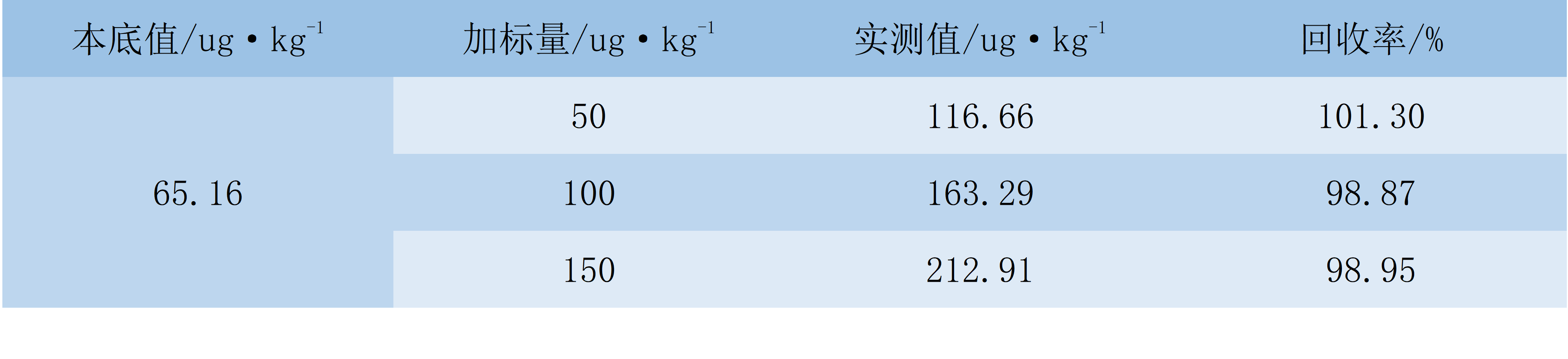 在銅精礦樣品中加入不同量的汞標準溶液,并進行加標回收試驗,回收試驗結(jié)果見下表。由表4可知,樣品加標回收率為98.1%~103%。