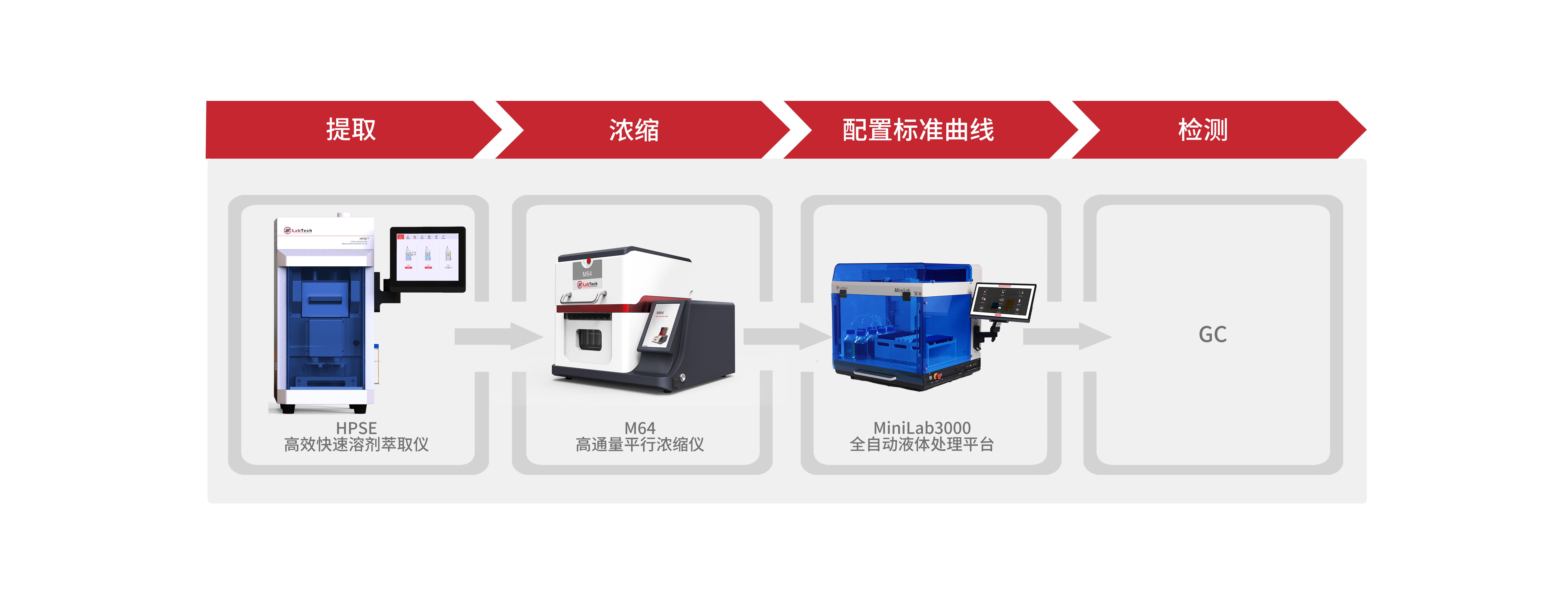 本方案參考標(biāo)準(zhǔn)“GB/T 34270-2017飼料中多氯聯(lián)苯與六氯苯的測(cè)定 氣相色譜法”來進(jìn)行相關(guān)實(shí)驗(yàn)的分析。本實(shí)驗(yàn)使用了萊伯泰科高效快速溶劑萃取儀(HPSE)提取飼料中的多氯聯(lián)苯與六氯苯,MultiVap-10多通道平行濃縮儀濃縮,硫酸磺化,全自動(dòng)高通量平行濃縮儀(M64)濃縮后用氣相色譜儀進(jìn)行檢測(cè)的一整套方法,該方法能夠有效、穩(wěn)定地達(dá)到實(shí)驗(yàn)的要求,可以提供領(lǐng)域范圍內(nèi)的良好應(yīng)用。